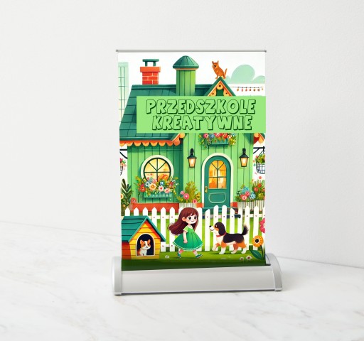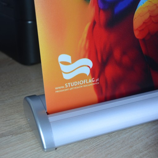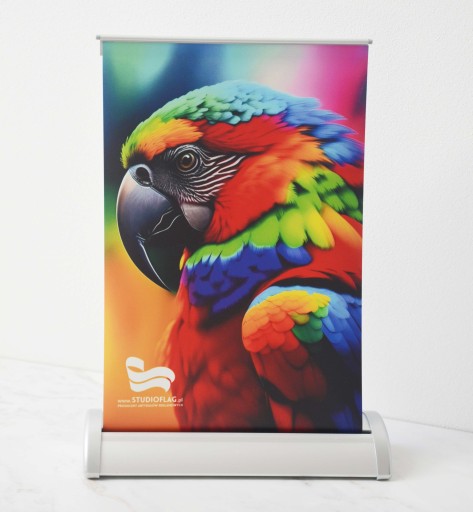 - Typ: jednostronny roll-up, idealny do biurkowej ekspozycji.