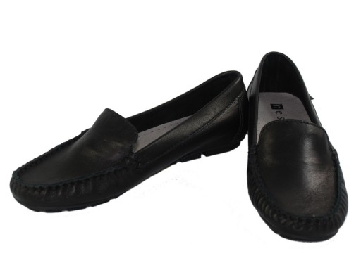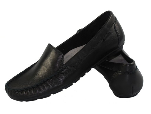 Mokasyny wykonane w całości z wysokogatunkowej skóry licowej w kolorze czarnym.