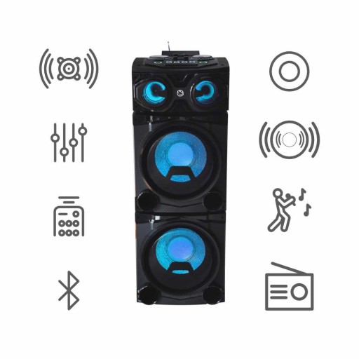 Funkcje Moc szczytowa 300W ✔️ X-BASS ✔️ Modułowa konstrukcja ✔️ Efekty świetlne Disco ✔️ Equalizer ✔️ Karaoke ✔️ Nagrywanie ✔️ Bluetooth ✔️ Radio FM
