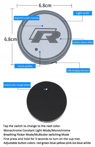 Светодиодная накладка на чашку автомобиля Volkswagen VW
