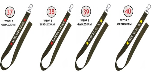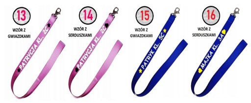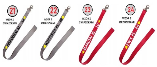 * nadruk z jednej strony (również w różnych wersjach kolorystycznych) - różne opcje do wyboru IMIĘ/NAZWISKO/KLASA, lub dowolny napis,