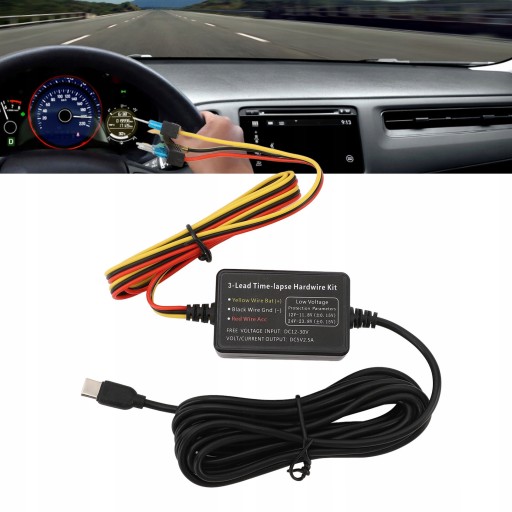 Zestaw przewodów kamery samochodowej typu C. Przewód zasilający kamery samochodowej od 12 V–30 V do 5 V do zasilania GPS. Detektory radarowe