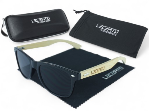OKULARY PRZECIWSŁONECZNE UV400 DREWNIANE BAMBUSOWE ZESTAW LECERTO