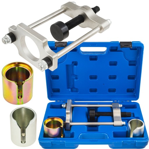 Ściągacz tylnych tulei wahacza Ford Mazda Volvo to profesjonalne narzędzie, które umożliwia szybki i bezproblemowy demontaż oraz montaż tylnych tulei wahacza w pojazdach marki Ford, Mazda i Volvo. Ten zestaw jest niezastąpiony w warsztatach mechanicznych oraz dla osób zajmujących się naprawą zawieszenia w tych modelach samochodów. Dzięki solidnej konstrukcji i precyzyjnemu dopasowaniu do odpowiednich modeli, narzędzie zapewnia wygodę pracy i skuteczność podczas serwisowania zawieszenia.