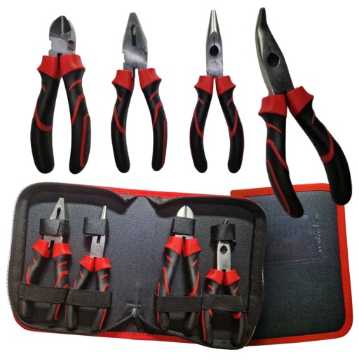 Komplet 4 sztuk szczypiec o długości 160 mm: Uniwersalne Wydłużone proste Wydłużone wygięte Boczne tnące