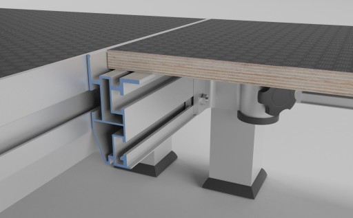 Podest wykonany jest na bazie lekkiego profilu aluminiowego z rowkami teowymi, wypełnionego wytrzymałym blatem ze sklejki o grubości 15mm (nie 12mm), z powłoką antypoślizgową typu HEXA. Nośność podestu wynosi 850 kg na 1 m kw., potwierdzona badaniami technicznymi. Podesty są wzmocnione specjalną belką aluminiową. W oparciu o obliczenia statyczne i próby wytrzymałościowe, spełniają wymogi odpowiednich norm i przepisów odnośnie bezpieczeństwa użytkowania.
