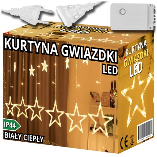 KURTYNA ŚWIETLNA GWIAZDKI LED BIAŁE CIEPŁE LAMPKI CHOINKOWE DŁUGA GIRLANDA