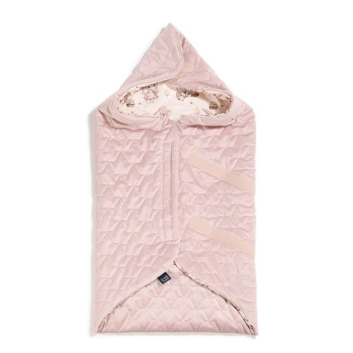 Po zapięciu kocyka na górze tworzy się miękki kaptur otulający główkę dziecka.