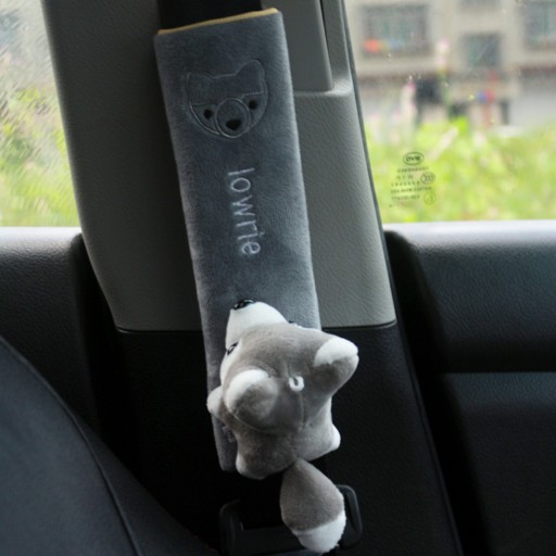 NAKŁADKA OCHRANIACZ NA PAS PASY BEZPIECZEŃSTWA PLUSZAK SZARY LISEK MASKOTKA