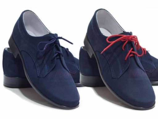 Bardzo eleganckie granatowe buty komunijne dla chłopca Polskiego Producenta obuwia firmy MIKO. Wykonane z miękkiego materiału nubuk, wkładka ze skórki naturalnej. Buty sznurowane, sznurówki dołączone do obuwia w kolorze granatowym i czerwonym. Z przodu lekkie zaokrąglenia.
