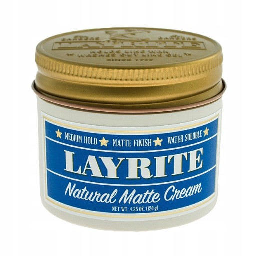 Pomada do włosów Layrite Natural Matt Cream to idealna pomada do codziennego układania mniej wymagających fryzur. Dzięki swojej wodnej bazie bardzo łatwo zmywa się z włosów. A średni chwyt pomady świetnie radzi sobie z utrzymaniem fryzury przez cały dzień. Pomada pozostawia na włosach naturalne, matowe wykończenie oraz charakterystyczny dla pomad tej marki, waniliowy zapach.