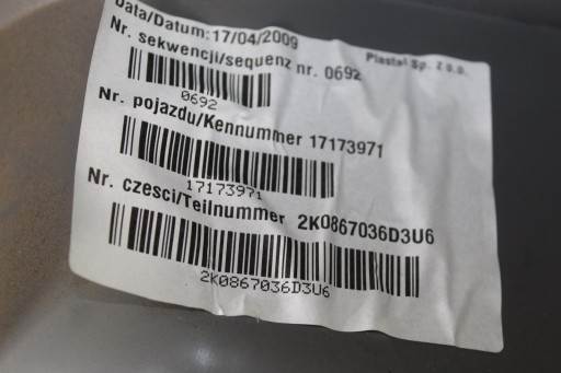 BOCZEK BAGAŻNIKA PRAWY TYŁ VW CADDY III