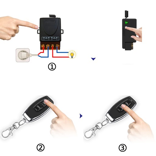 ✅Interiock (zatrzask): Naciśnij przycisk nauki 3 razy, wskaźnik zamiga 3 razy i przejdzie w tryb nauki, a następnie naciśnij przycisk „ON”, czekając, aż lampka kontrolna zamiga 3 razy i naciśnie przycisk „OFF”, a następnie wskaźnik zamiga 3 razy i zgaśnie, kod parowania zostanie ukończony. Funkcja opóźnienia czasowego:
