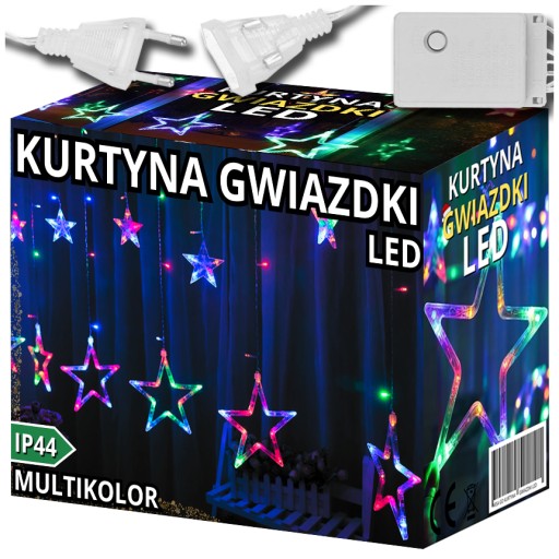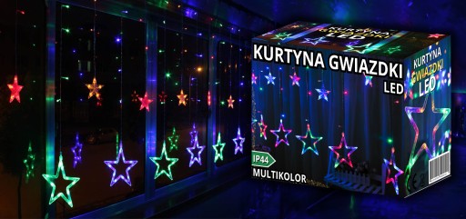 KURTYNA ŚWIETLNA GWIAZDKI LED MULTI KOLOR LAMPKI CHOINKOWE DŁUGA GIRLANDA