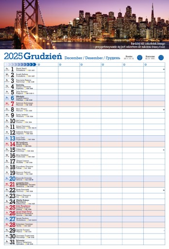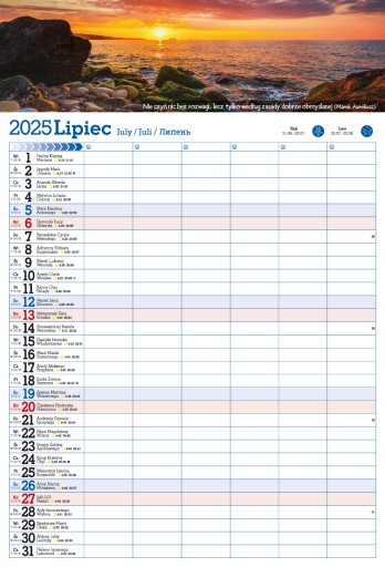Format 320/470mm. KALENDARZ DO NOTOWANIA I PLANOWANIA KAŻDEGO DNIA NAWET DLA 6 OSÓB.