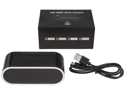 BUDZIK Z UKRYTĄ KAMERĄ SZPIEGOWSKĄ NA WIFI FULL HD ZEGAR LED