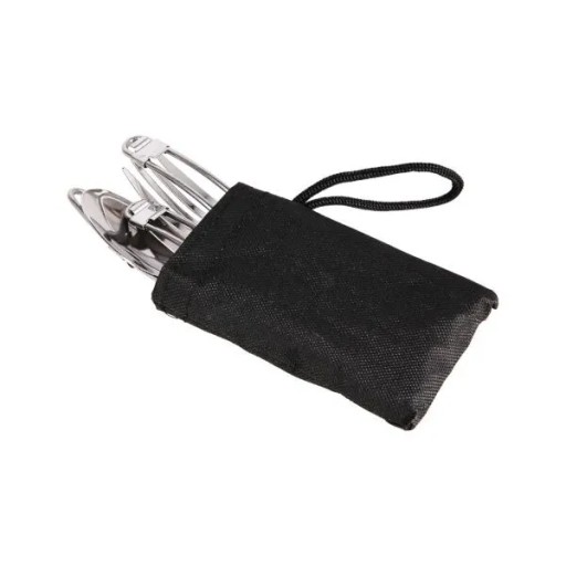 Naczynia zostały wykonane z solidnego, odpornego na uszkodzenia anodyzowanego aluminium. Są bardzo wytrzymałe oraz lekkie. Zarówno garnek jak i pokrywka posiadają składane uchwyty pokryte izolacją, która zapobiega przypadkowemu poparzeniu się podczas odkładania naczyń z palnika. Z kolei w transporcie, złożone po bokach garnków nie zajmują miejsca i zestaw można bez problemu zabrać do plecaka. W zestawie znajdziemy również składane sztućce ze stali nierdzewnej. Zajmują mało miejsca, są bardzo wytrzymałe i łatwe w czyszczeniu. Do zestawu dołączony jest również pokrowiec na menażkę oraz na sztućce.
