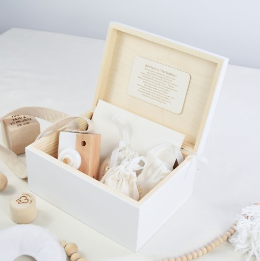 Personalizowany prezent dla dziecka – Nasze memory box jest w pełni personalizowane! Możesz dodać imię dziecka, datę narodzin lub specjalne życzenia, co sprawia, że staje się ono wyjątkowym i niepowtarzalnym prezentem. Personalizowany grawer dodaje pudełku osobistego charakteru, co czyni go doskonałym wyborem na prezent na chrzest, narodziny lub pierwsze urodziny.