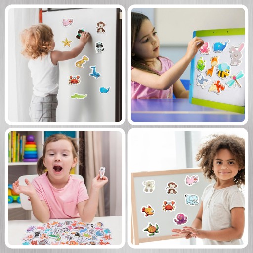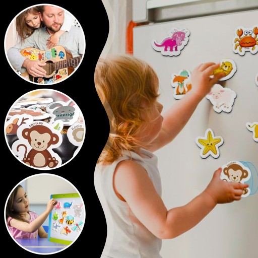 ✔️Rozwój zdolności manualnych:Praca z magnesami, umieszczanie ich na lodówce czy tablicy, pomaga dzieciom rozwijać zdolności manualne i koordynację ruchową, wspierając rozwój małych rączek.