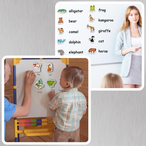 ✔️Angielskie słówka na magnesach:Każdy magnes zawiera angielską nazwę zwierzęcia, co pozwala dzieciom poznawać nowe słowa i uczyć się ich w prosty, przyjemny sposób.