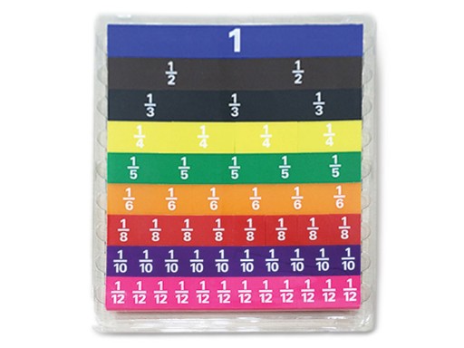 Zestaw edukacyjny ułatwiający opanowanie i zrozumienie abstrakcyjnych pojęć i działań związanych z ułamkami. Kolorowe klocki o różnej długości z reprezentacją odpowiednich wartości służą do kształtowania pojęcia ułamka jako części całości i przedstawiania całości w postaci sumy różnych ułamków. Zestaw wzbogacono specjalną tacką, ułatwiającą układanie i przechowywanie elementów.