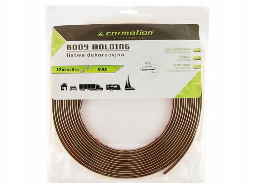 Listwa dekoracyjna przeznaczona do dekoracji wnętrza (deski rozdzielczej) i nadwozia samochodu (zderzaki, drzwi). Elastyczna i odporna na warunki atmosferyczne. Łatwa w montażu, można zainstalować ją bez konieczności wiercenia - za pomocą wysokiej jakości taśmy dwustronnej.