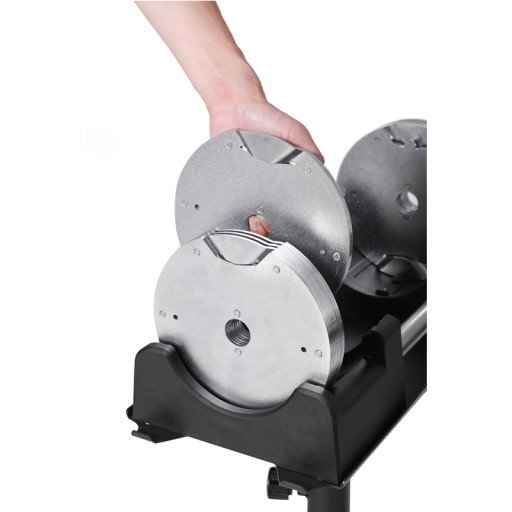 ✅ Zmiany obciążenia dokonuje się poprzez przekręcanie rączki hantli odłożonej na podstawie. Wyciągnięcie hantli z podstawy powoduje zablokowanie ustawionego ciężaru oraz umożliwia bezpieczne wykonywanie ćwiczeń.