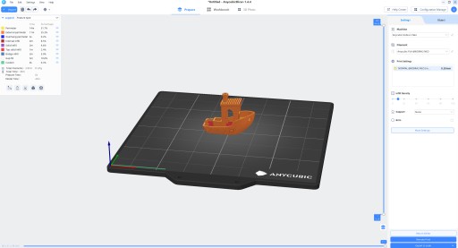 Wraz z drukarką dostarczony został filament testowy. Jest go 10m, co w zupełności wystarczy na wydrukowanie dwukrotnie testowego modelu o nazwie 3DBenchy. Zaraz po złożeniu drukarki oraz przejścia wszystkich kroków z instrukcji, sugerujemy przeprowadzenie Auto leveling'u (jest opisane w instrukcji krok po kroku) a następnie wydrukowaniu 3DBenchy by sprawdzić ustawienia drukarki oraz jakość druku.