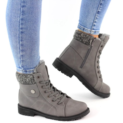BOTKI DAMSKIE TIMBERKI OCIEPLANE TRAPERY FUTRO SUWAK GREY BUTTON