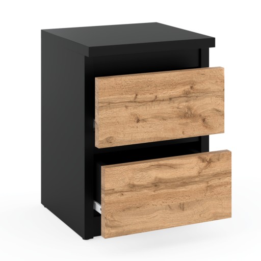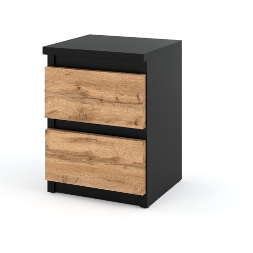 SZAFKA NOCNA CZARNA DĄB WOTAN 30 CM 2 SZUFLADY STOLIK RTV DO SYPIALNI LOFT