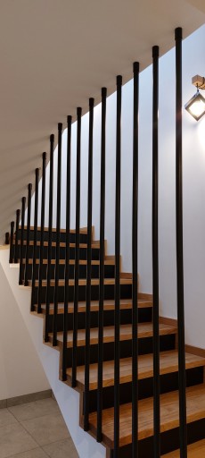 Przykład zastosowania do montarzu rury harfy montowanej do stopnia schodó lub podestu i skośnego sufitu.