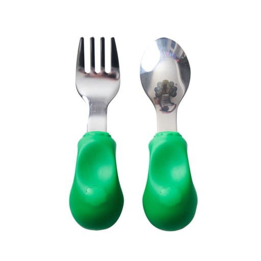 Sztućce przeznaczone są dla dzieci, które rozwijają umiejętność posługiwania się prawą i lewą dłonią w koordynacji ręka-oko. Sztućce ćwiczące uścisk dłoniowy oraz chwyt cęgowy, używając palców wskazujących i kciuka. Wspierają budowanie pewności siebie podczas samodzielnego spożywania posiłków.