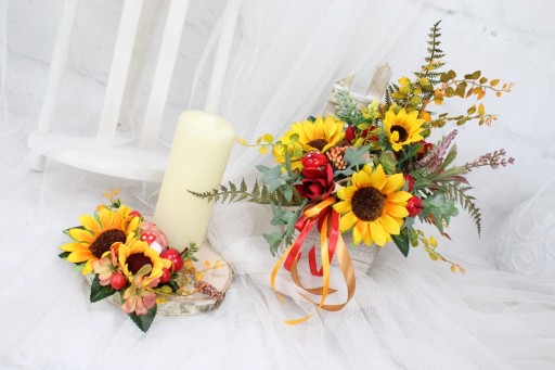 Kompozycje wykonuje ręcznie z tego względu układ czy rodzaj ozdób i dodatków może się nieco różnić od zdjęć. Zawsze jednak zostaje zachowany styl i kolorystyka.