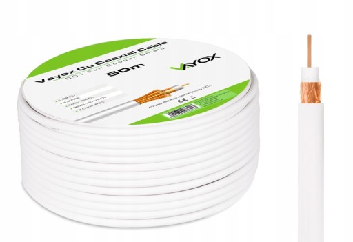 KABEL ANTENOWY KONCENTRYCZNY PRZEWÓD DO TV DVB-T2 SAT MIEDŹ CU 4K 25m VAYOX