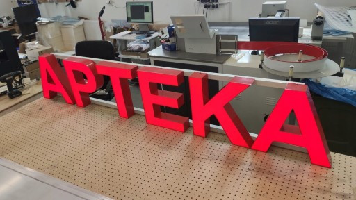 - boki litery wykonane z taśmy aluminiowej, dostępnej w różnych kolorach do wyboru według wzornika poniżej.