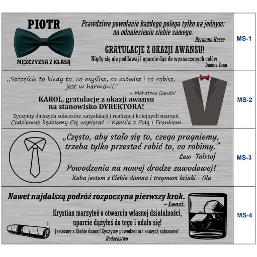 - srebrna tabliczka umieszczona w pudełku z dowolną dedykacją