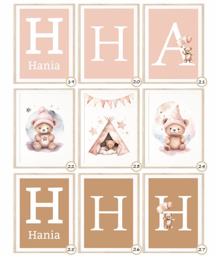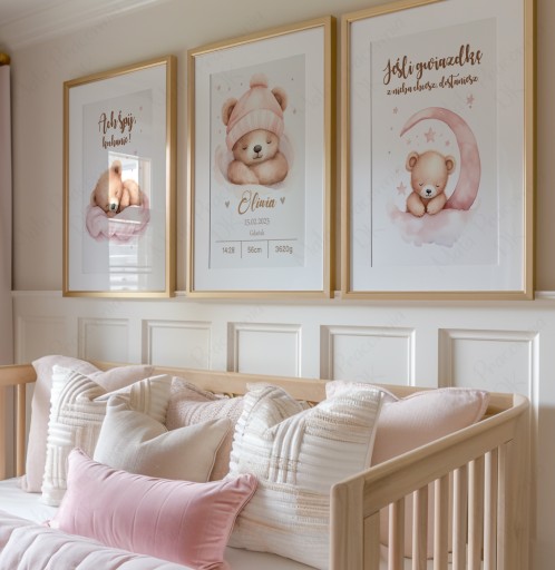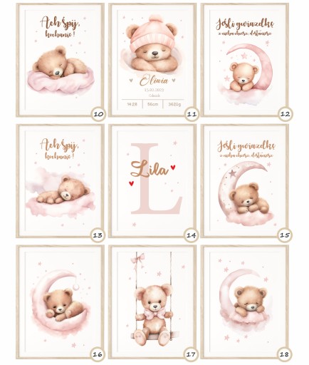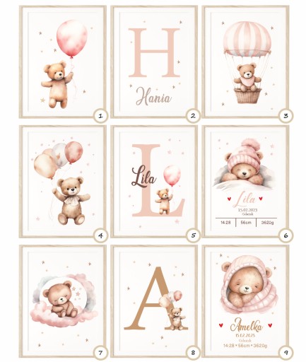 Do wyboru 21 plakatów z uroczymi misiami, metryczka, oraz personalizacja.