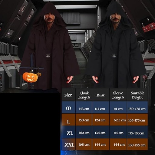 PELERYNA Z KAPTUREM DŁUGA KOSTIUM JEDI WAMPIRA SZATA BRĄZOWA STRÓJ XL