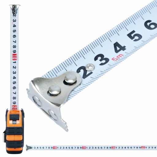 - Zaczep mierniczy na taśmie umożliwia dokładny pomiar wewnętrzny i zewnętrzny