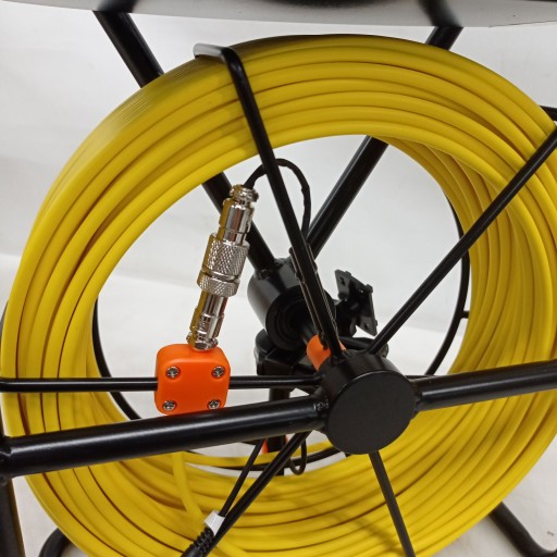 Kabel o długości 50 m i praktyczny bęben kablowy: Dołączony kabel ma długość 50 m i jest bardzo wytrzymały. Duża długość kabla ułatwia dotarcie do trudno dostępnych miejsc. Zestaw kamery inspekcyjnej zawiera również praktyczny bęben kablowy do organizacji kabli.