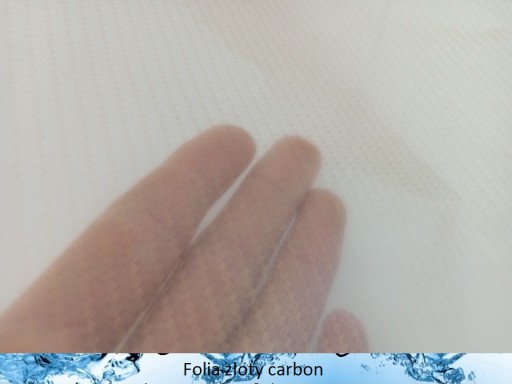 Folia to tzw. film do hydrografiki Gold carbon, przypomina przezroczystą folię z nałożonym wzorem. Dany wzór jest odpowiednikiem efektu jaki uzyska się na elemencie. Należy pamiętać, że efekt końcowy jest również zależny od dobranego podkładu. Np. czarny podkład do folii białej z serii carbon da efekt czarnego carbonu.
