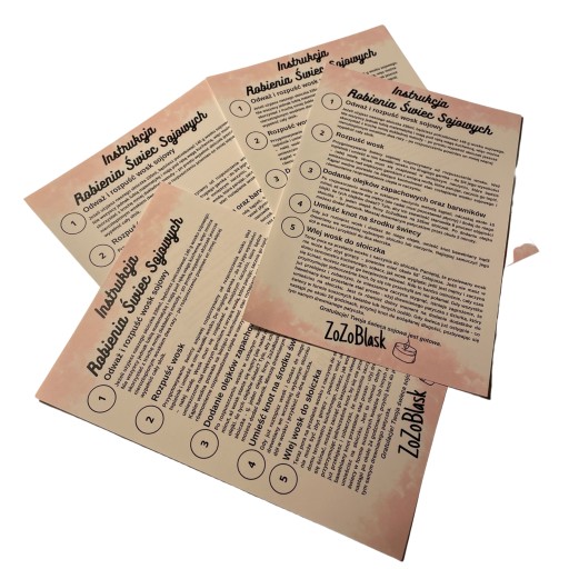 - Dzięki instukcji dowiesz się między innymi jak dodać olejki zapachowe oraz barwniki do świecy, jak mierzyć odpowiednią ilość wosku, w jakiej temperaturze podgrzewać wosk i więcej!