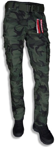 Bojówki stretch kieszenie Moro Z PASKIEM