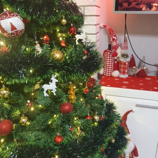 Drzewko choinkowe jest oplatane łańcuchem zaraz po udekorowaniu go światełkami. Zielony łańcuch oświetlony lampkami bożonarodzeniowymi tworzy hipnotyzujący efekt, wzmacniając świąteczną atmosferę w pomieszczeniu. Łańcuch dzięki swojej nieszablonowej kolorystyce odbija i rozprasza światło, rzucając ciepły i zachęcający blask na całe drzewko, czyniąc je centralnym punktem radości i świętowania.