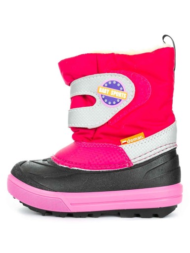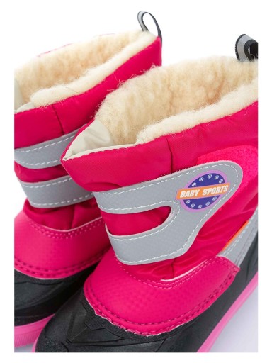 Dziewczęce śniegowce idealne na zimowe szaleństwa na śniegu. Śniegowce są w kolorze różowym z szarymi i czarnymi wstawkami, więc będą fajnie pasować do każdej młodej damy. Zapinane są na szeroki rzep, który ułatwi ich zakładanie i zdejmowanie. Skład: Cholewka - poliester / Podeszwa – termokauczuk / Ocieplenie - dzianina futerkowa