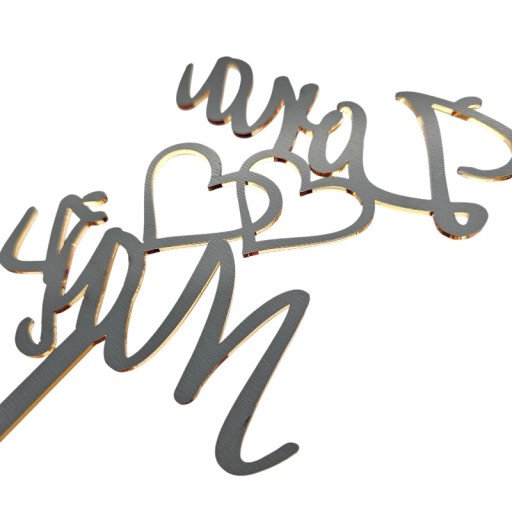 Złoty lustrzany topper na tort Żona Mąż