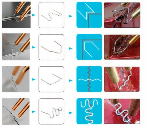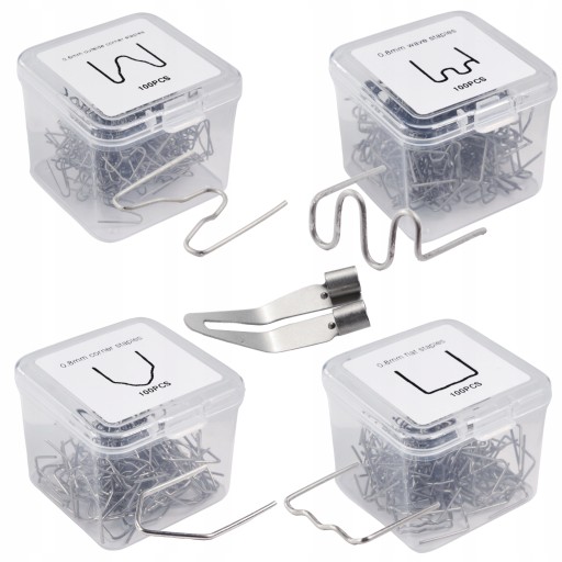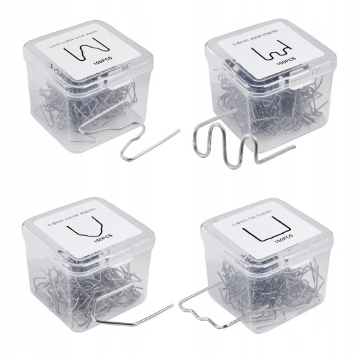- 4x komplet zszywek do plastiku o różnych kształtach (4x 100sztuk)
