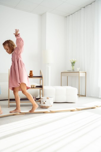 8 elementów, 8 łączników i 2 zakończenia, które możesz modyfikować w dowolny sposób - mostek można złączyć razem lub zbudować jedną dłuuuugą ścieżkę! Ćwiczenia na równoważni sprawiają, że Dzieci wzmacniają mięśnie głębokie (odpowiedzialne za np. utrzymanie prawidłowej postawy) i poprawiają koordynację ruchową.