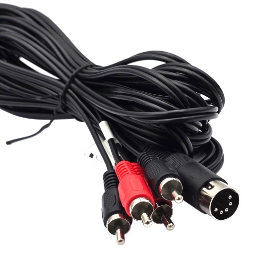 Dobrej jakości kabel DIN - RCA, wyprodukowany przy użyciu materiałów najwyższej jakości. Długi przewód zakończony z jednej strony wtykiem DIN, a z drugiej kompletem 4 złącz RCA.