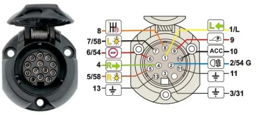 Przewód kabel 13 żył PIN przyczepy kempingowej świateł 12V